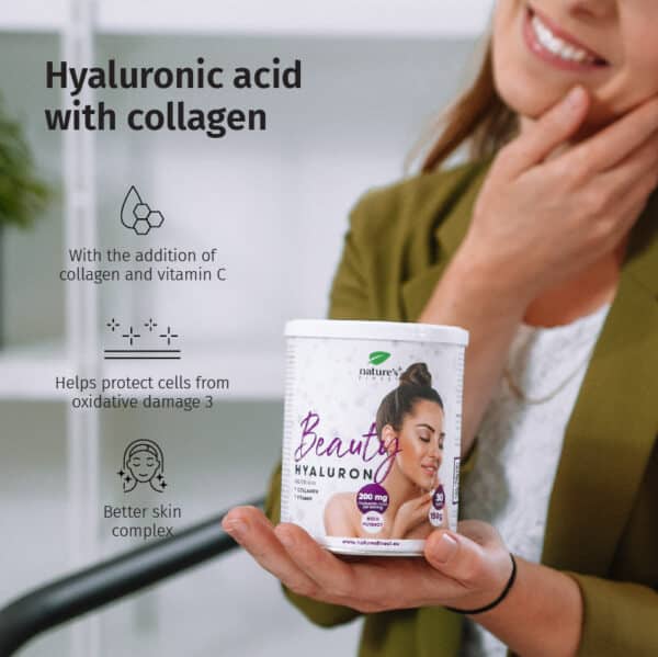 Skønhed Hyaluron: Rør 5 g (1 skefuld) i et glas vand og drik. Vejning anbefales til nøjagtig dosering.