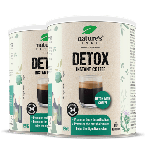 4-i-1 effekt med marietidselekstrakt, artiskokekstrakt, chlorella og instant kaffe.