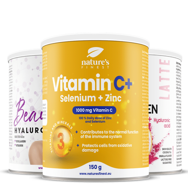 Beauty Hyaluron har en forfriskende citronsmag. Nature’s Finest Vitamin C + Selen + Zinc smager som frisk limonade.