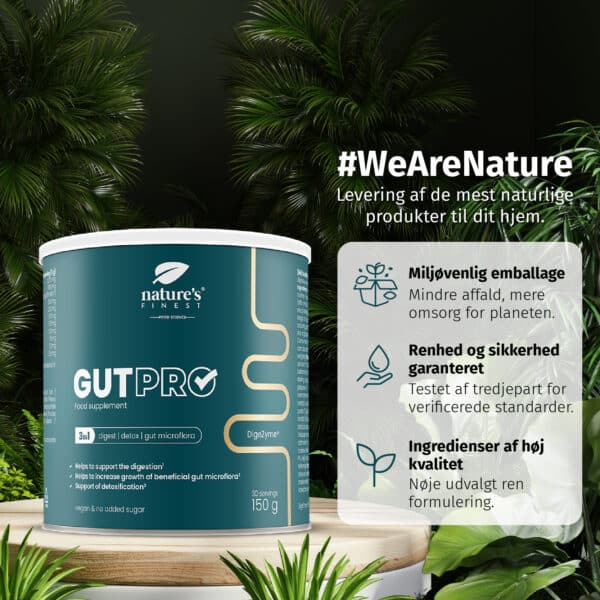 GutPRO skiller sig ud blandt kosttilskud, fordi det kombinerer fibre, enzymer og planteekstrakter i en synergistisk formel, der understøtter fordøjelsen⁷, afgiftning³ og balancen i tarmfloraen³, hvilket hjælper dig på lang sigt.
