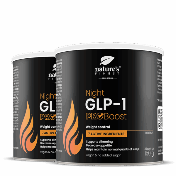 Night GLP-1 ProBoost bidrager til vægttab¹, fremmer fedtstofskiftet¹, hjælper med at reducere appetitten¹ og kalorieindtaget¹ samt bidrager til at regulere blodsukker¹,² og kolesterolniveauer³. Den hjælper også med at bevare en normal søvnkvalitet⁵, så du føler dig friskere i løbet af dagen.