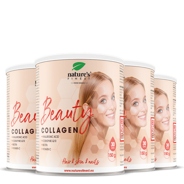 Beauty Collagen med hyaluronsyre og coenzym Q10 hjælper med at nære og fugte huden.