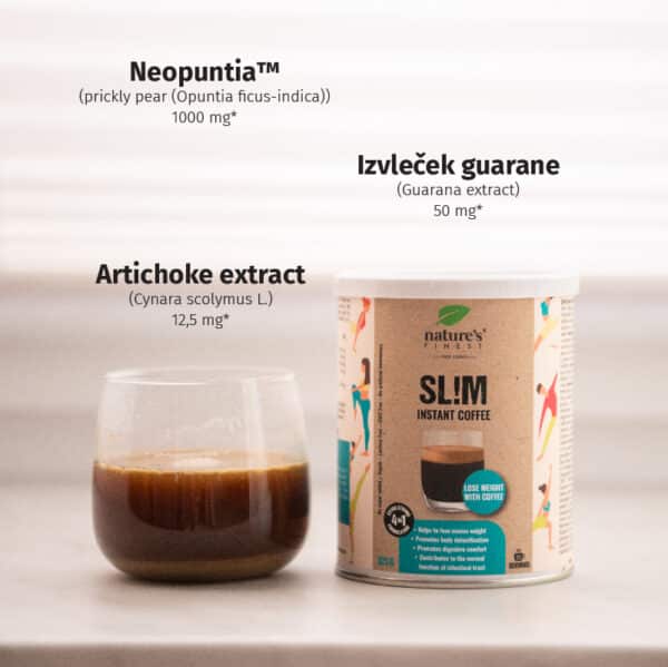 • Sl!m Coffee: 4 i 1 handling med den patenterede vægttabsformel Neopuntia™ – Lækker kaffe, der hjælper dig med at kontrollere din vægt, forbedrer fordøjelsen og giver en frisk bølge af energi