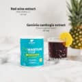 Tapiokastivelse, rødvinsekstrakt, naturlig ananassmag, garcinia cambogia-ekstrakt, rødbedekoncentrat (maltodextrin, rødbedepulver), stabilisator: cellulose, sødemiddel: steviolglykosider.
